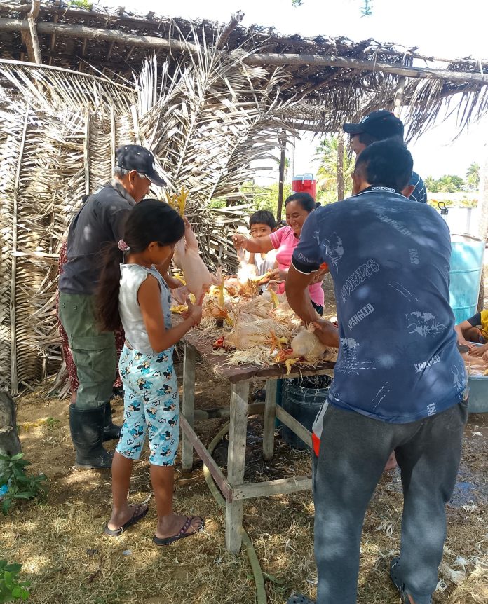 En el marco de la iniciativa, las mujeres también fueron capacitadas en producción vegetal y cría sostenible de aves de engorde, incorporando buenas prácticas sanitarias, administración básica y técnicas resilientes, adaptadas a las condiciones climáticas locales. Como resultado, actualmente disponen de un suministro continuo de proteína animal y aseguran una parte significativa del abastecimiento comunitario a bajo costo, beneficiando a más de 500 familias wayuu. Además, el 10 % de la producción se destina a donación para las escuelas públicas del punto y círculo, reforzando la alimentación de niños y niñas en edad escolar y fortaleciendo los sistemas locales de protección social y nutrición.