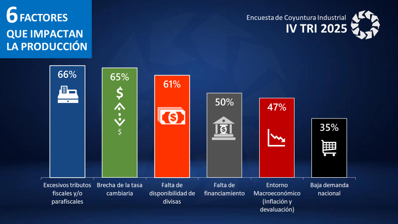 De acuerdo con los industriales afiliados a Conindustria, el desempeño del sector continúa condicionado por seis factores críticos que limitan la productividad:
