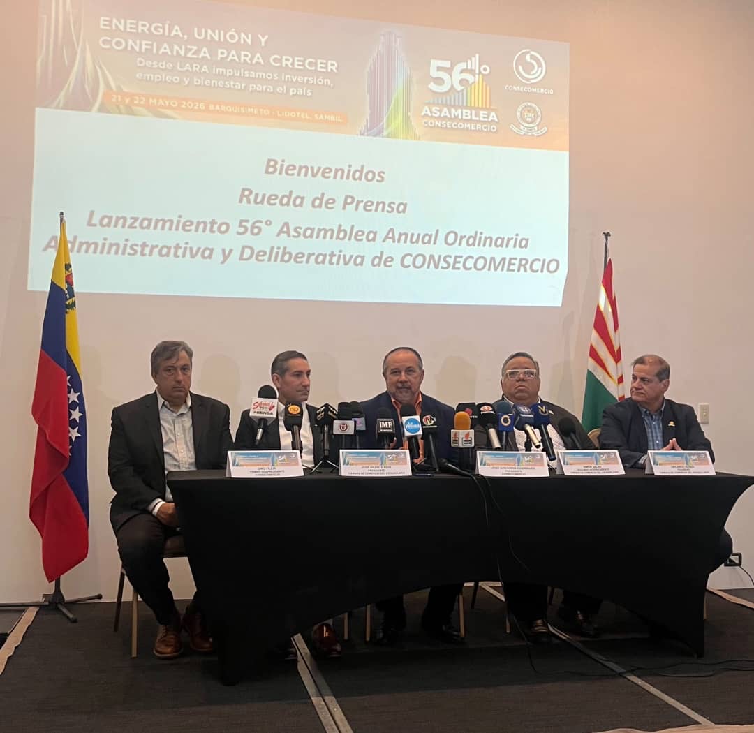 El Consejo Nacional del Comercio y los Servicios (Consecomercio) y la Cámara de Comercio del Estado Lara, celebrarán el próximo 21 y 22 de mayo de 2026 en la ciudad de Barquisimeto, en el Lidotel, Sambil, su 56° Asamblea Anual, con el nombre, “Energía, Unión y Confianza para Crecer”, desde Lara impulsamos inversión, empleo y bienestar para el país.