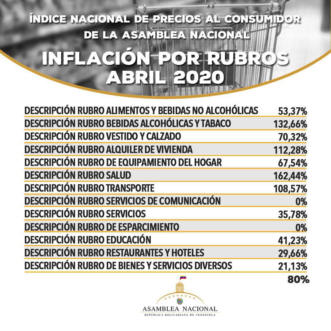 En 80% se ubicó la inflación en Venezuela durante el mes de abril, de acuerdo al índice de precios al consumidor de la Asamblea Nacional