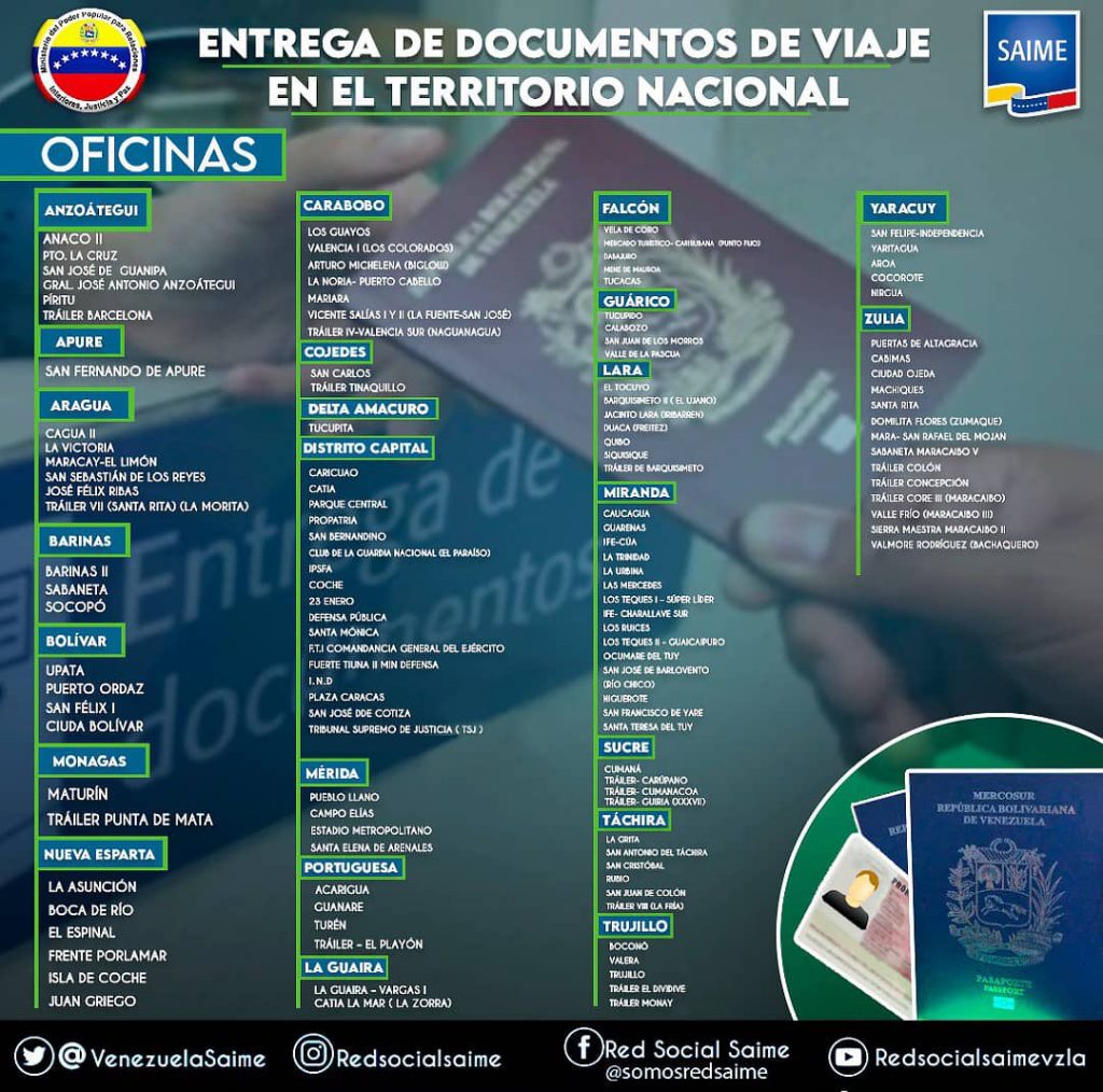 El Servicio Administrativo de Identificación, Migración y Extranjería (SAIME) anunció que desde este lunes 11 de enero comenzarán a entregar documentos en algunas de sus sedes en todo el territorio nacional.