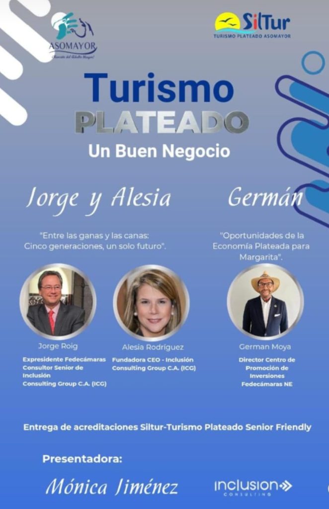 El próximo viernes 6 de mayo, en las instalaciones del Hotel Lidotel de Margarita, se estará llevando a cabo el evento «Turismo plateado: un buen negocio». El encuentro contará con la participación como ponentes del expresidente de Fedecámaras Jorge Roig, además de Alesia Rodríguez de Inclusión Consulting Group y German Moya, director del Centro de Promoción de Inversiones de Fedecámaras Nueva Esparta. La idea de esta iniciativa, impulsada en conjunto con la asociación civil Asomayor, es hablar sobre las potencialidades de la economía plateada en la región.