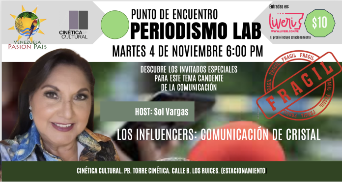 Al frente de Periodismo Lab, está la periodista Sol Vargas, reconocida por su trayectoria de 45 años frente a importantes medios de comunicación. En este segundo encuentro el tema a debatir será: “Los influencers: comunicación de cristal”.