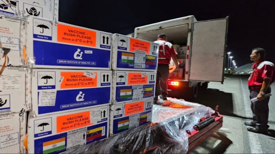Venezuela recibió este domingo un total de 1.285.000 dosis de distintos tipos de vacunas procedentes de la India en dos cargamentos, informó el Gobierno de nacional.